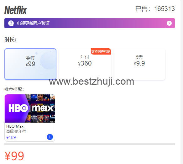 奈飞小铺成立于 2019 年,是国内领先的智能账号合租平台,这个平台目前购买奈飞至少要3个月,3个月是88元,如果购买6个月的Netflix,输入优惠码:Lanny1990 ,6个月则是162元左右,周期长的才有折扣,有其它产品需求也可以跟其它产品如Disney+(迪士尼+)打包组合购买,价格也是有优惠的。